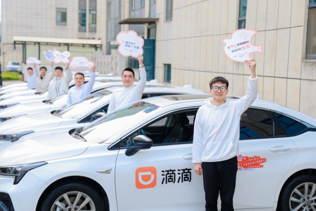 图组为:滴滴在武汉、西安、无锡等地组建赏花保障车队