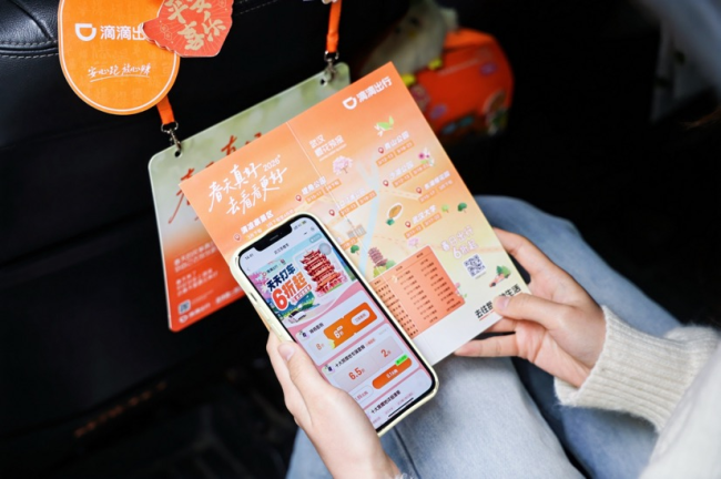 此外,在各文旅部门和主管部门的支持下,滴滴制作了赏花热门路线图,还在部分场站、赏花景区设置引导,帮助用户赏花不迷路,叫车更快速。用户可在文旅推荐的赏花景区寻找滴滴打卡点,领取赏花攻略、打车优惠券包、赏花地图等,参与互动打卡还可领精美周边。